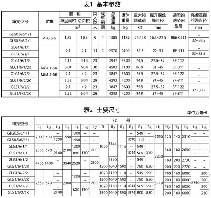 立井單繩罐籠由楔形連接裝置,抓捕器、罐體、罐內(nèi)阻車器、導(dǎo)向裝置組成,如用于上下人,則必須設(shè)置斷繩保險器(防墜器),抓捕器根據(jù)制動繩布置形式可分為I型(對稱)抓捕和II型(對角)抓捕形式。常用單繩罐籠及配套防墜器的具體型號參數(shù)見附表。